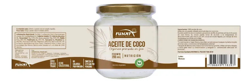 Aceite de coco org. X 200ml. Fu