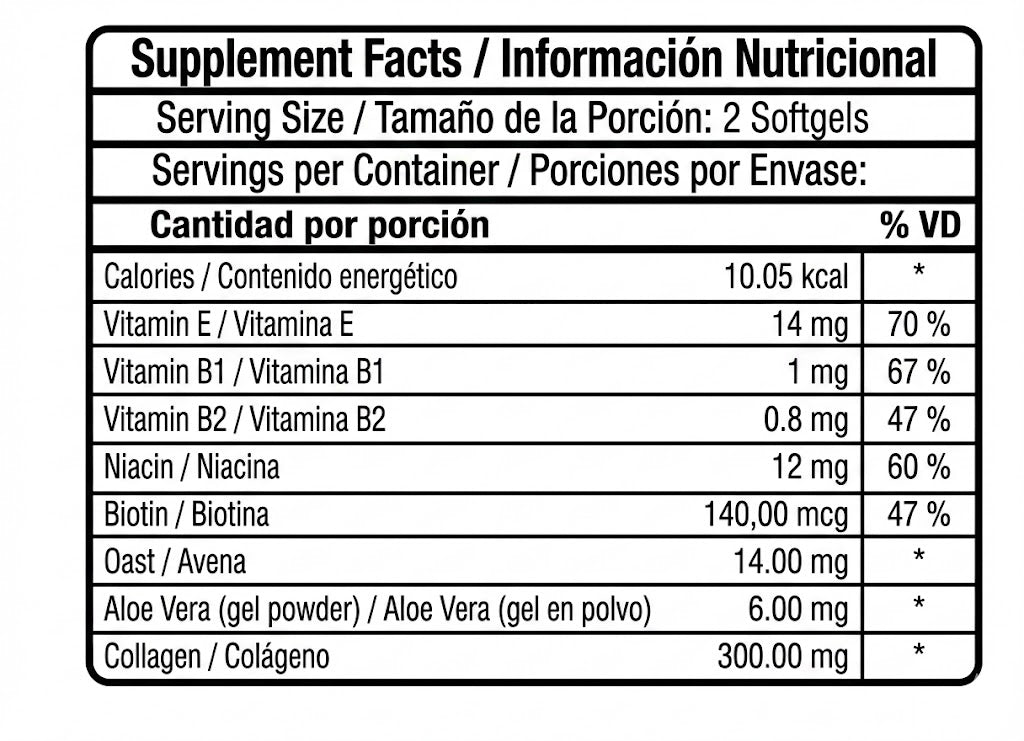Suplemento nutricional enriquecido con biotina y vitaminas del complejo B que favorece el fortalecimiento del cabello, uñas y piel. Contribuye a mejorar la vitalidad, apoyar el metabolismo energético y mantener un aspecto saludable y radiante de forma integral.