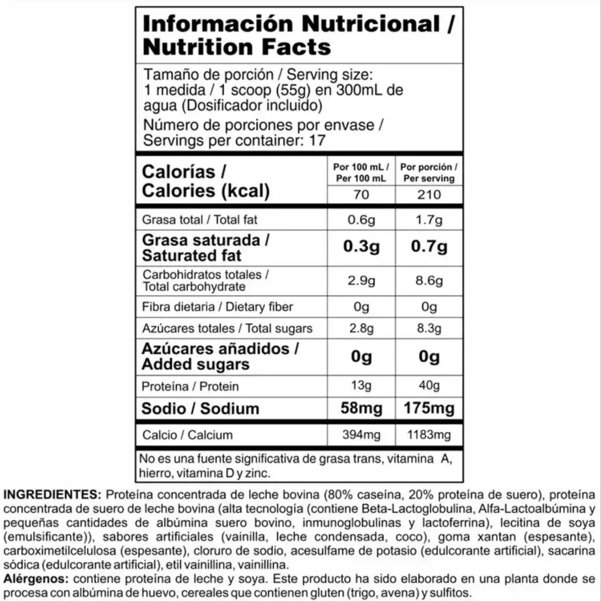 Mezcla de proteínas de alta calidad sabor vainilla, que combina absorción rápida y lenta para favorecer el crecimiento y mantenimiento muscular.