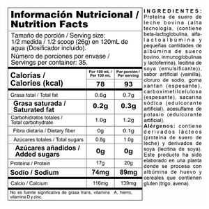 Cada porción (26g) aporta 20g de proteína con un perfil completo de aminoácidos esenciales y de cadena ramificada (BCAA), lo que lo convierte en un excelente aliado para complementar planes de alimentación balanceada. Su presentación en polvo sabor vainilla, suave y de fácil disolución, se adapta fácilmente a diversas rutinas.