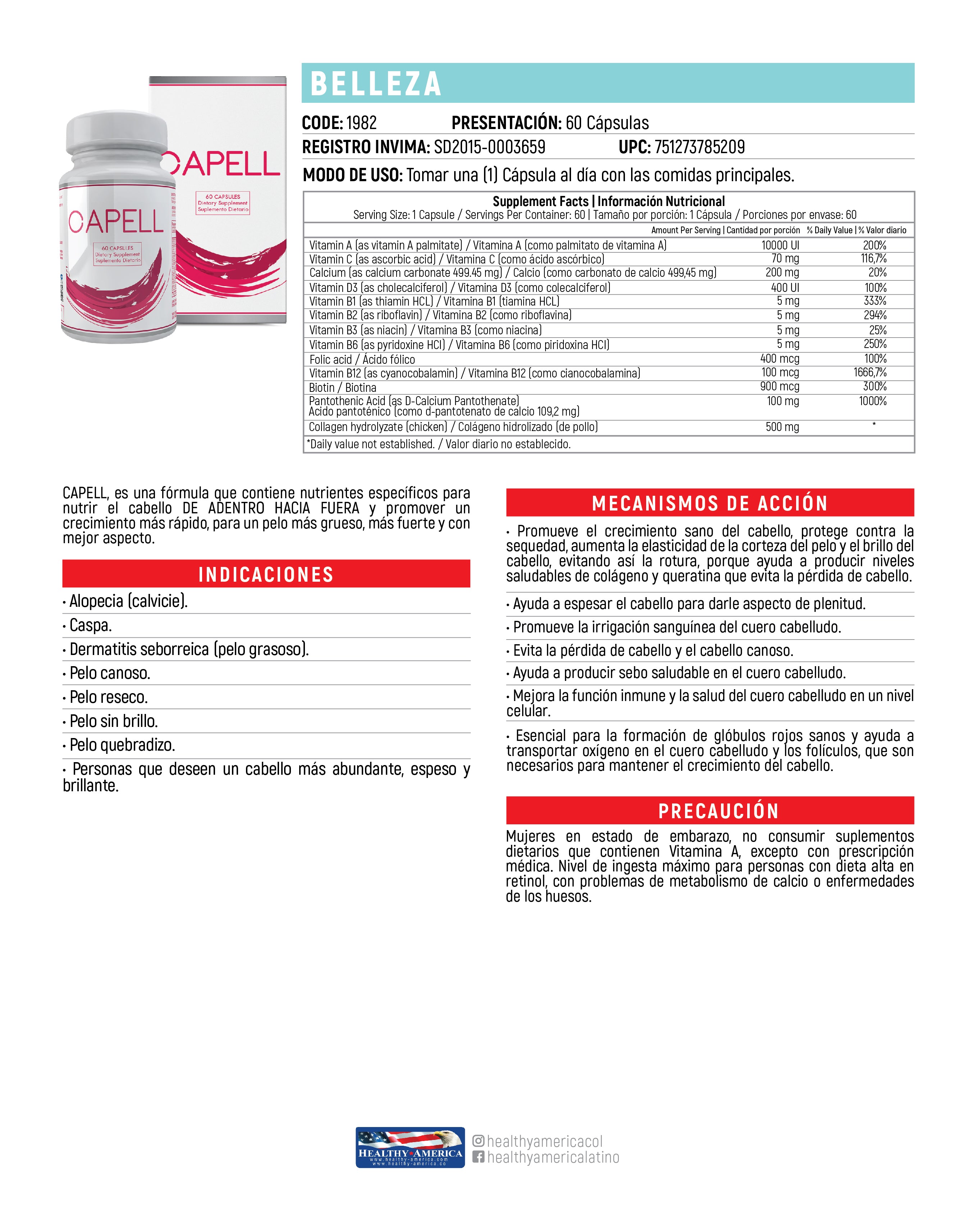 Suplemento natural diseñado para fortalecer el cabello, uñas y piel. Sus ingredientes ayudan a mejorar la salud capilar, prevenir la caída del cabello, fortalecer las uñas y promover un aspecto saludable y el bienestar general de manera efectiva.