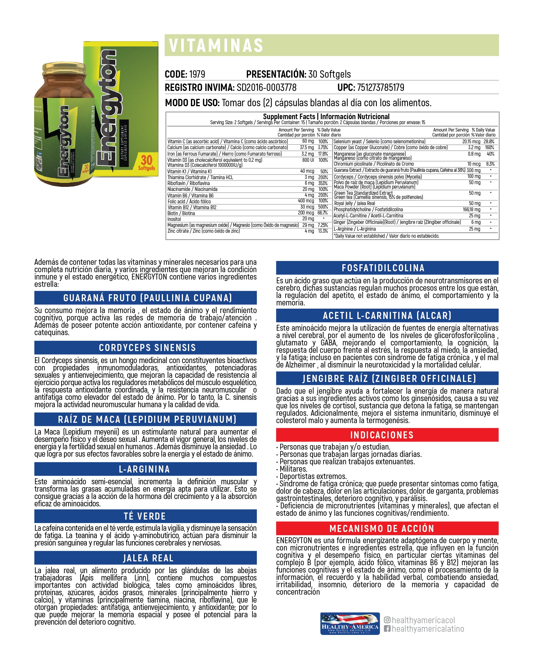 Suplemento natural formulado para aumentar la energía, vitalidad y resistencia física. Sus ingredientes ayudan a combatir la fatiga, mejorar el rendimiento diario y promover el bienestar general de manera efectiva y segura.