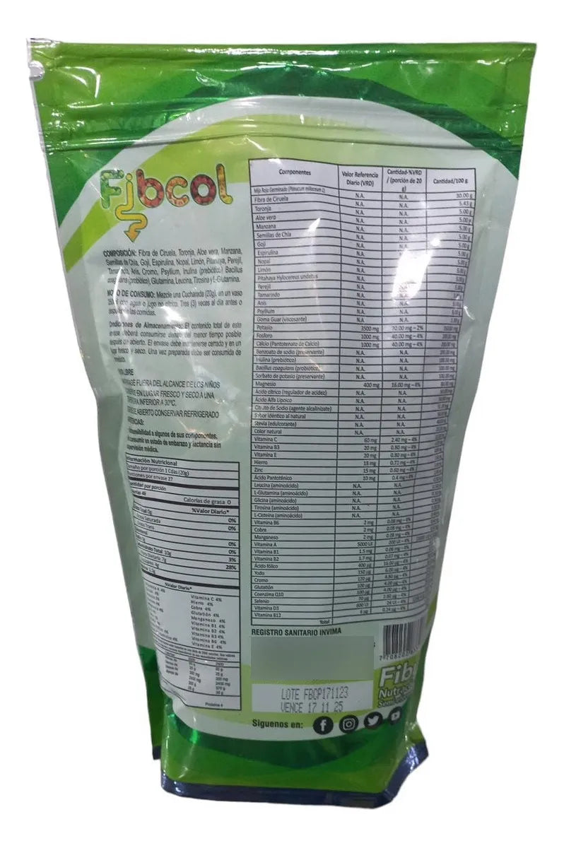 Mezcla en polvo rica en fibra y colágeno que apoya la digestión, regula el tránsito intestinal y contribuye al cuidado de articulaciones, piel y cabello.