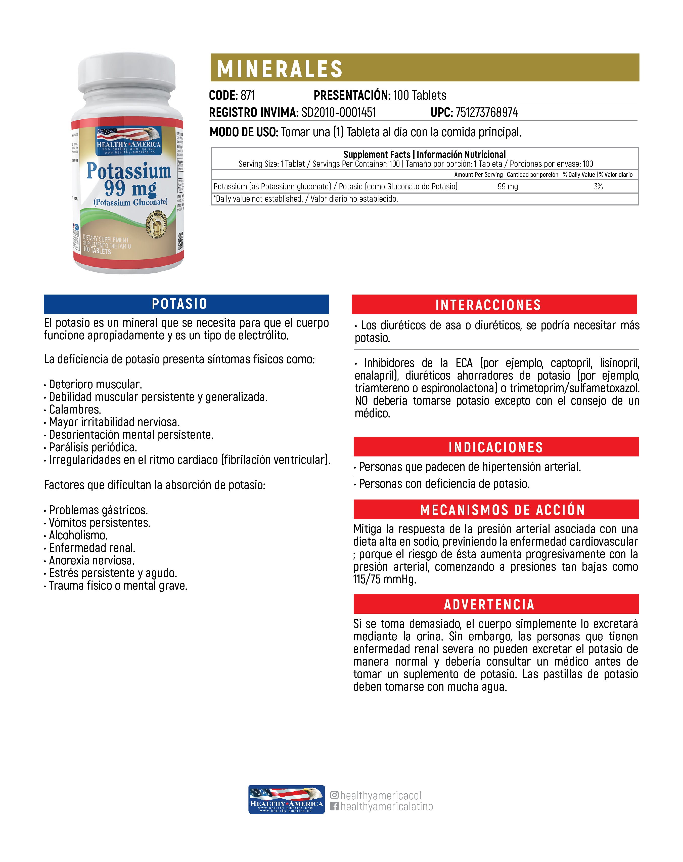 POTASSIUM 99MG X 100TABS. HA