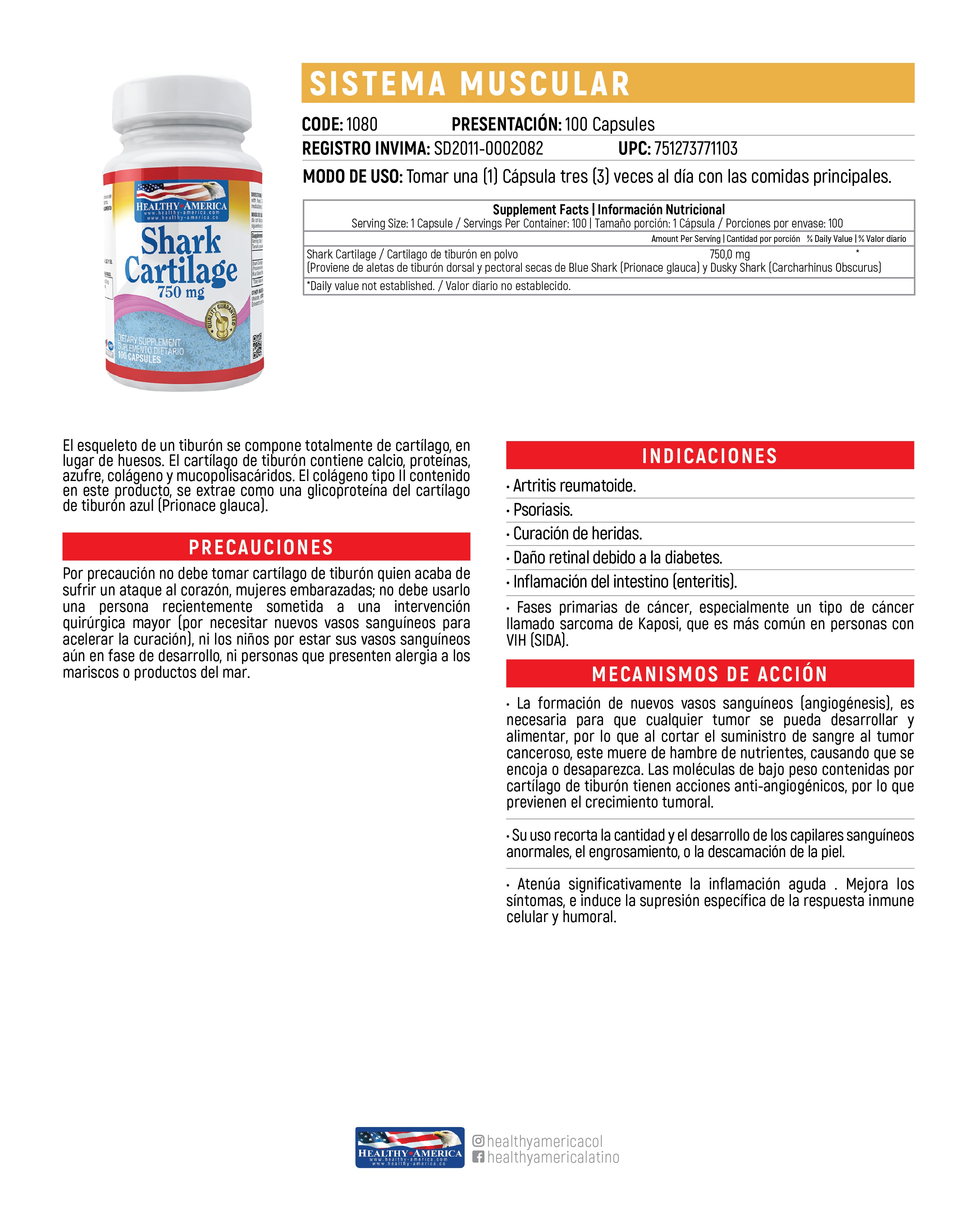 SHARK CARTILAGE 750MG X 100CAPS. HA