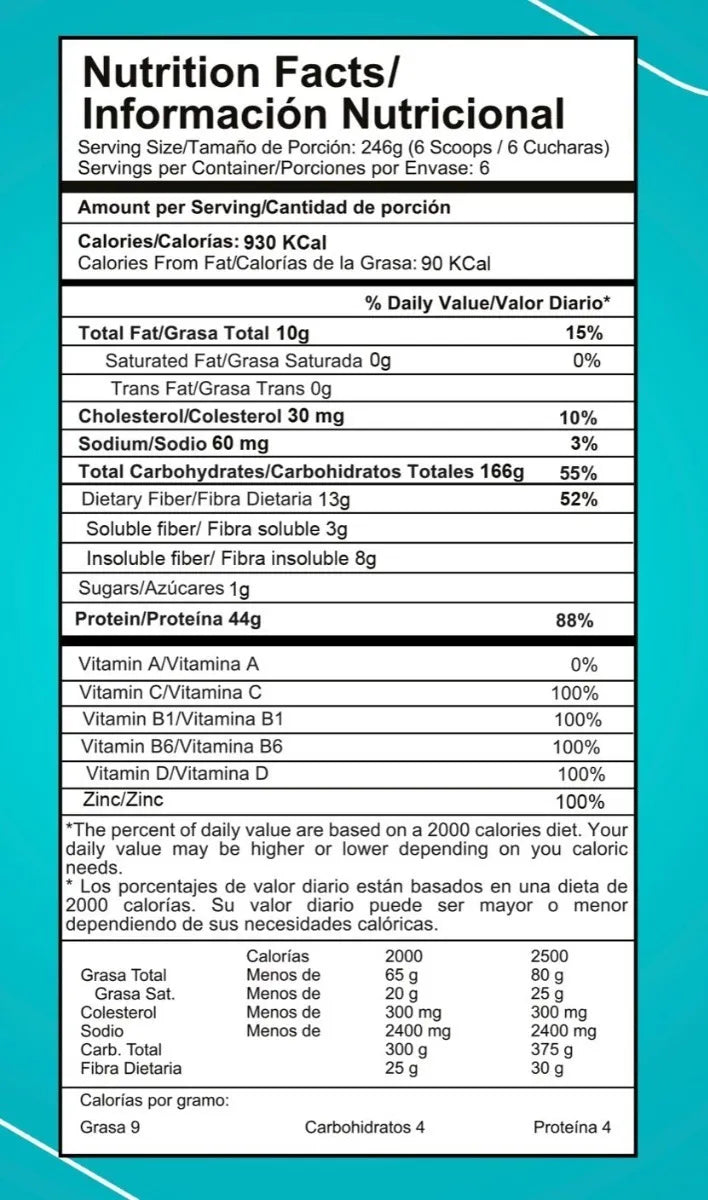 Gainer en polvo que combina proteínas y carbohidratos para aumentar masa muscular y energía, con delicioso sabor a fresa.