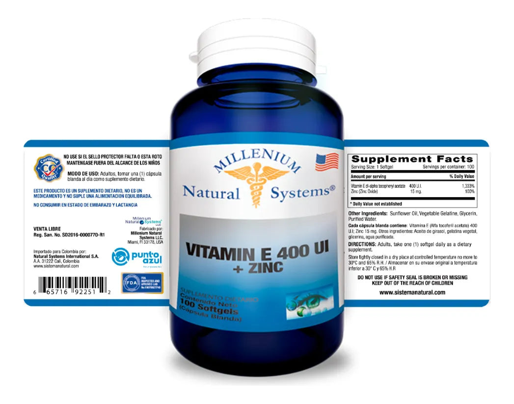 Suplemento natural que combina vitamina E y zinc para potenciar la protección celular contra el daño oxidativo. Ayuda a fortalecer el sistema inmunológico, mejorar la salud de la piel y apoyar la regeneración de tejidos.